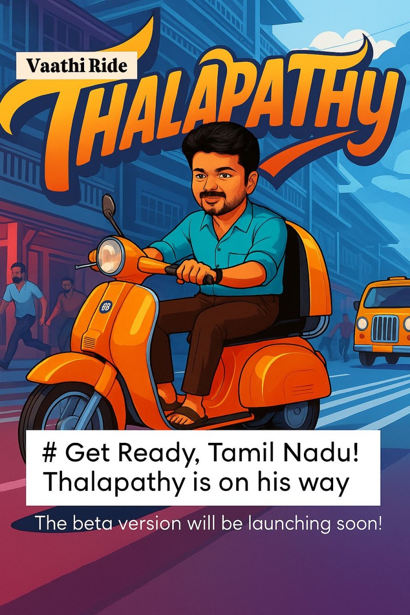 #VaathiRide #ThalapathyRide #ThalapathyVijay #BikeTaxi #TamilNaduRides #ComingSoon #RideLikeThalapathy